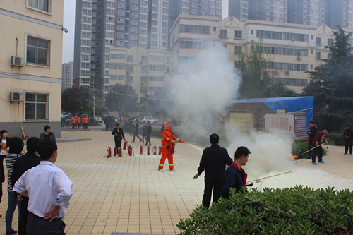 為了嚴(yán)格貫徹落實(shí)省市對(duì)于安全管理工作的相關(guān)規(guī)定,加強(qiáng)小區(qū)消防安全管理工作,進(jìn)一步強(qiáng)化全體員工消防意識(shí),增強(qiáng)防火自救能力,杜絕重大特大火災(zāi)事故的發(fā)生,為業(yè)主營(yíng)造一個(gè)良好安全的居住環(huán)境。4月27日下午3時(shí)在安谷苑小區(qū)廣場(chǎng),物業(yè)公司聯(lián)合消防維保單位舉辦了以“ 預(yù)防為主,消防結(jié)合”為主題的消防演練活動(dòng)。物業(yè)公司領(lǐng)導(dǎo)班子,員工代表,維保人員,業(yè)主代表共計(jì)40余人參加了本次演習(xí)。