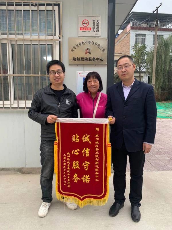 王阿姨是陜郵職院家屬院3號(hào)樓的業(yè)主。子女因?yàn)楣ぷ髅β岛苌僭谏磉,?gòu)買水電、維修等瑣碎事,都是物業(yè)人員手把手教老人如何在手機(jī)上操作。平時(shí)還幫助老人解決一些日,嵤,老人為了表達(dá)內(nèi)心的感激之情,送來(lái)了錦旗。