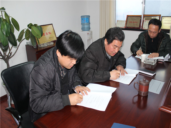 會后,為充分體現(xiàn)框架式管理模式,同時便于年終考核,獎優(yōu)罰劣,總經(jīng)理趙明海與各負責人簽訂了2014年度目標責任書。為強化落實安全工作,主管安全工作的副總魏述剛與各負責人簽訂了2014年安全生產(chǎn)管理目標責任書。